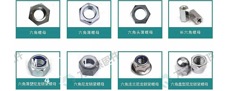 標準方螺母C級GB 39—88;六角螺母C級GB/T41—2000;六角厚螺母GB 56—88;蝶形螺母GB 62—88;環形螺母GB 63—88;組合式蓋形螺母GB 802—88;球面六角螺母GB 804—88;扣緊螺母GB 805—88;滾花高螺母GB 806—8 大小不同,螺紋不等分為不同的規格.一般國標、德標用M表示(例如M8、M16),美制、英制則用分數或#表示規格(如8#、10#、1/4、3/8)緊固件,螺母是將機械設備緊密連接起來的零件,通過內側的螺紋,同等規格螺母和螺絲,才能