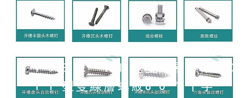 1)開槽普通螺釘多用于較小零件的連接。它有盤頭螺釘、圓柱頭螺釘、半沉頭螺釘和沉頭螺釘。盤頭螺釘和圓柱頭螺釘的釘頭強度較高,瑁在普通的部件連接上;半沉頭螺釘的頭部呈弧形,安裝后它的頂端略外露,且美觀光滑,一般用 1、開槽圓頭木螺釘 GB 99-86 DIN96;2、開槽沉頭木螺釘 GB 100-86 DIN97;3、開槽半沉頭木螺釘 GB 101-86 DIN95;4、六角頭木螺釘 GB 102-86 DIN571;5、十字槽圓頭木螺釘 GB 950-86 DIN7996;