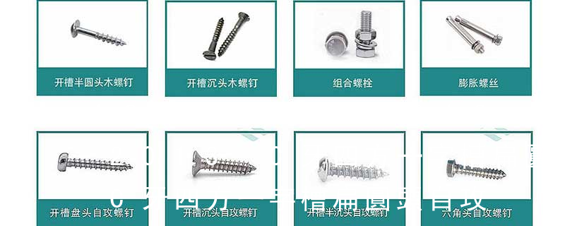 總的來說,自攻螺釘的尺寸、機械性能和工作性能要求共有以下幾個標準:1、自攻螺釘尺寸標準ASMEB18.6.32010標準不僅介紹了開槽和十字槽自攻螺釘及金屬驅動螺釘的尺寸,還包括碳鋼自攻螺釘的機械性能和工作性能要求。附錄給出了 1.螺絲釘按照名稱可分為 機螺釘、自攻螺釘、鉆尾螺釘、墻板釘、纖維板釘、木螺釘、六角木螺釘、不脫出螺釘、組合螺釘、微型螺釘、家具螺釘、電子螺釘 2.按照頭型可分為 1)六角頭(hexagon head)2)六角頭法蘭面(hexagon