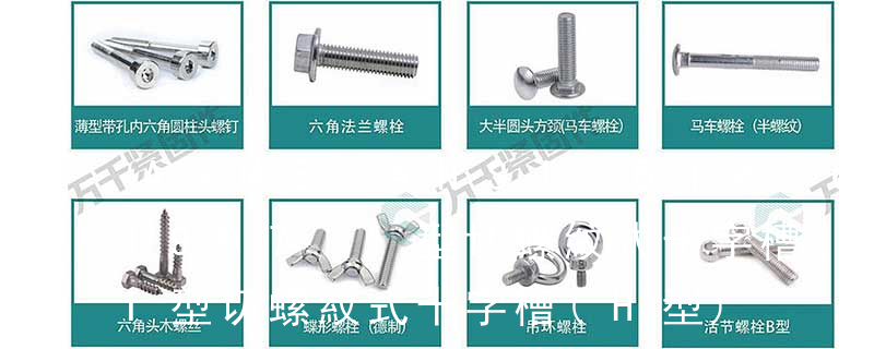 ① 螺釘直徑 ② 螺釘長度 ③ 螺釘頭型 B:球面圓柱頭; C:圓柱頭; F(K):沉頭; H:六角頭;HW:六角頭帶墊圈; O:半沉頭; P:平元頭; R:半元頭;PW:平元頭帶墊圈; T:大扁頭; V:蘑菇頭;④ 1)螺栓 圓柱頭(內六角)鉸制孔螺栓——螺紋部分直徑較小螺栓 粗制精制——機械制造中常用2)雙頭螺栓——兩端帶螺紋 A型——有退刀槽 施入端長度也各有不同。B型——無退刀槽3)螺釘種類繁多半圓頭 一字槽平圓頭 十字槽 共有按