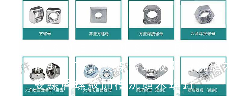 六角螺母 Hexagon nuts 方螺母-C Square nuts 六角頭螺釘 Hexagon screws 六角頭圓柱端 緊定螺釘 Hexagon set screws with full dog point 薄型方螺母-B Square nuts without bevel (pressed nuts)六角頭木螺釘 Hexgon hea