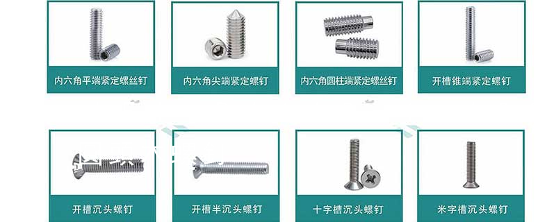 木螺釘有十字槽沉頭、十字槽半沉頭、十字槽圓頭、開槽(一字槽)沉頭、開槽半沉頭、開槽圓頭、六角頭等幾種,公稱直徑有1.6、2、2.5、3、3.5、4、5、6、7、8、10等系列,長度有6、8、10、12、16、20、25、3 1、開槽圓頭木螺釘 GB 99-86 DIN96; 2、開槽沉頭木螺釘 GB 100-86 DIN97; 3、開槽半沉頭木螺釘 GB 101-86 DIN95; 4、六角頭木螺釘 GB 102-86 DIN571; 5、十字槽圓頭木螺釘 GB 950-86 DIN7996; 6、十字槽