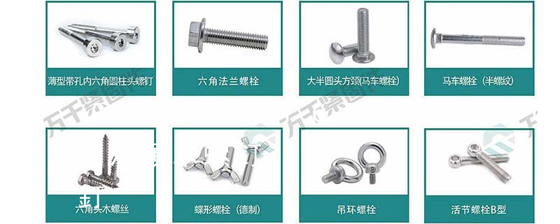 木螺釘有十字槽沉頭、十字槽半沉頭、十字槽圓頭、開槽(一字槽)沉頭、開槽半沉頭、開槽圓頭、六角頭等幾種,公稱直徑有1.6、2、2.5、3、3.5、4、5、6、7、8、10等系列,長度有6、8、10、12、16、20、25、